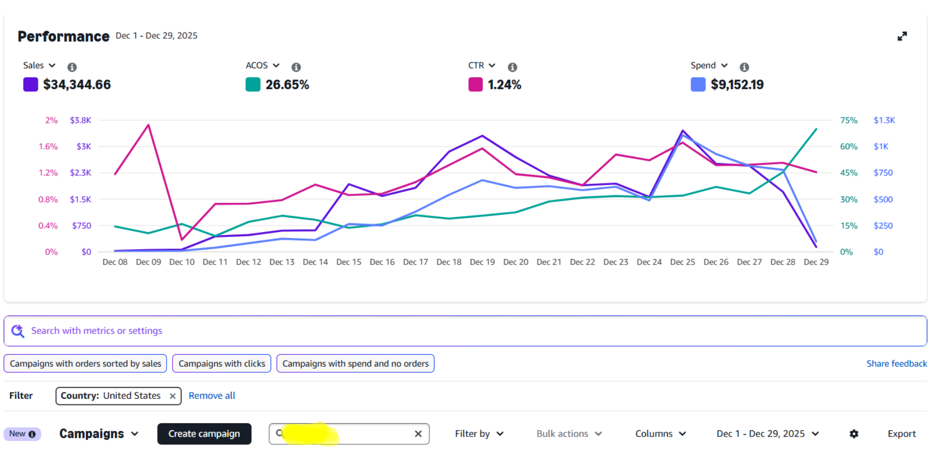 1. High Advertising Cost of Sale (ACOS) at 29%